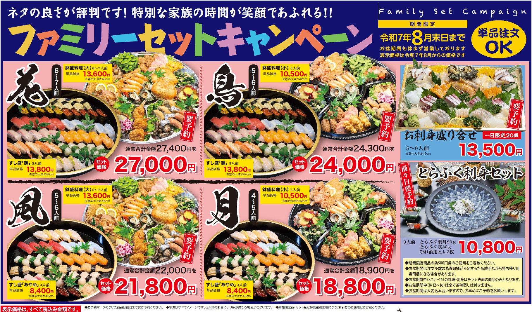 基本を忠実に守った正統派のにぎり寿司や豊富な仕出しメニューが揃っています。ご家族でのお祝い事や記念日、大切な方の接待など、どんなご利用にも対応が可能です。一家団らんに笑顔を届けてくれる「丸十寿司」の味を、是非一度、お楽しみください。