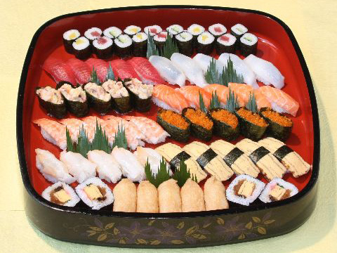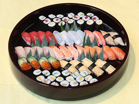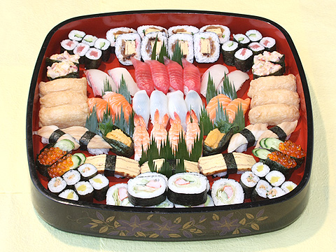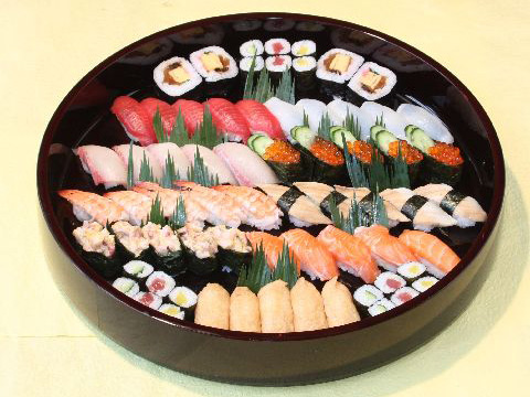 盛り合わせ 盛り合わせ だんらん盛 ※写真は5人前 あやめの入った大人も子供も 大好きな盛り合わせ 吸い物付 2人前4,600円 吸い物2個付 3人前6,500円 吸い物3個付 4人前9,000円 吸い物4個付 5人前11,200円 吸い物5個付 丸十盛 ※写真は5人前 すみれの入ったお手軽価格の盛り合わせ 吸い物付 2人前3,800円 吸い物2個付 3人前5,000円 吸い物3個付 4人前6,200円 吸い物4個付 5人前7,400円 吸い物5個付 はなまる盛 ※写真は5人前 ききょうの入ったちょっと贅沢な 盛り合わせ 吸い物付 2人前4,500円 吸い物2個付 3人前6,000円 吸い物3個付 4人前7,600円 吸い物4個付 5人前9,200円 吸い物5個付 とびきり盛 ※写真は5人前 つばきの入ったご馳走気分で 楽しめる盛り合わせ 茶碗蒸付トロ入 2人前6,000円 茶碗蒸2個付 3人前8,300円 茶碗蒸3個付 4人前10,500円 茶碗蒸4個付 5人前13,000円 茶碗蒸5個付 もてなし盛 ※写真は6人前 特上にぎりの入った盛り合わせで 大切なお客様やお祝い事に最適 茶碗蒸付トロ入 2人前6,700円 茶碗蒸2個付 3人前9,100円 茶碗蒸3個付 4人前11,600円 茶碗蒸4個付 5人前14,000円 茶碗蒸5個付 6人前15,000円 茶碗蒸6個付 厳選もてなし盛 茶碗蒸付トロ入 7~8人前16,800円 茶碗蒸7個付 むさし盛 吸い物付 6~7人前9,600円 吸い物6個付 やまと盛 吸い物付 5~6人前7,800円 吸い物5個付 得々にぎり ※写真は4人前 吸い物付 3~4人前5,670円 吸い物3個付 4~5人前7,560円 吸い物4個付 5~6人前9,340円 吸い物5個付 6~7人前10,800円 吸い物6個付 助六 巻寿司といなり寿司の盛り合わせ 吸い物付 4人前3,400円 吸物4個付 にぎり抜き盛 巻物をいろいろ盛り付けました 吸い物付 4人前4,000円 吸物4個付 ※仕入の都合により、写真と内容が異なる場合がございます。 ※表示価格は、税込価格です。